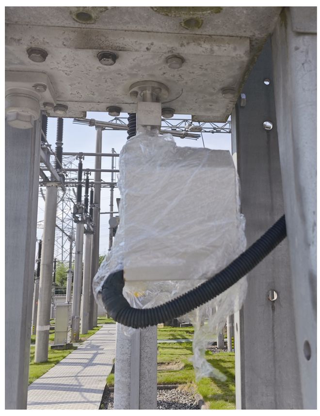 由于带电更换SF6表计风险较大,使用热吹风机烘干4号主变220 kV断路器A相SF6表计接线盒,并使用绝缘胶布进行包扎,外部防雨罩使用保鲜膜材料进行临时防雨密封,如图4所示。2024年12月停电期间,更换4号主变三相220 kV断路器SF6表计及外引线表计临时防雨措施